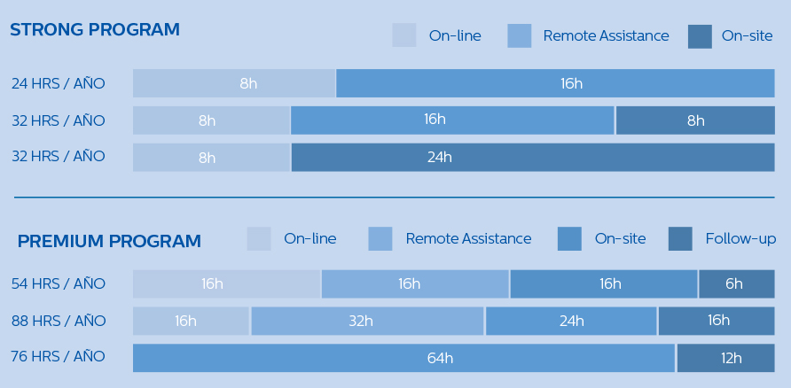 Philips pone a su disposición un número de horas adicionales destinadas a aumentar su experiencia de educación continua de un modo aún más personalizado. Según sus necesidades, coordine con el equipo de especialistas clínicos actividades de seguimiento, refuerzo de contenidos vía on-line, Remote Assistance, asesoría y eventos de actualización, los cuales pueden agendarse durante todo el periodo contratado.